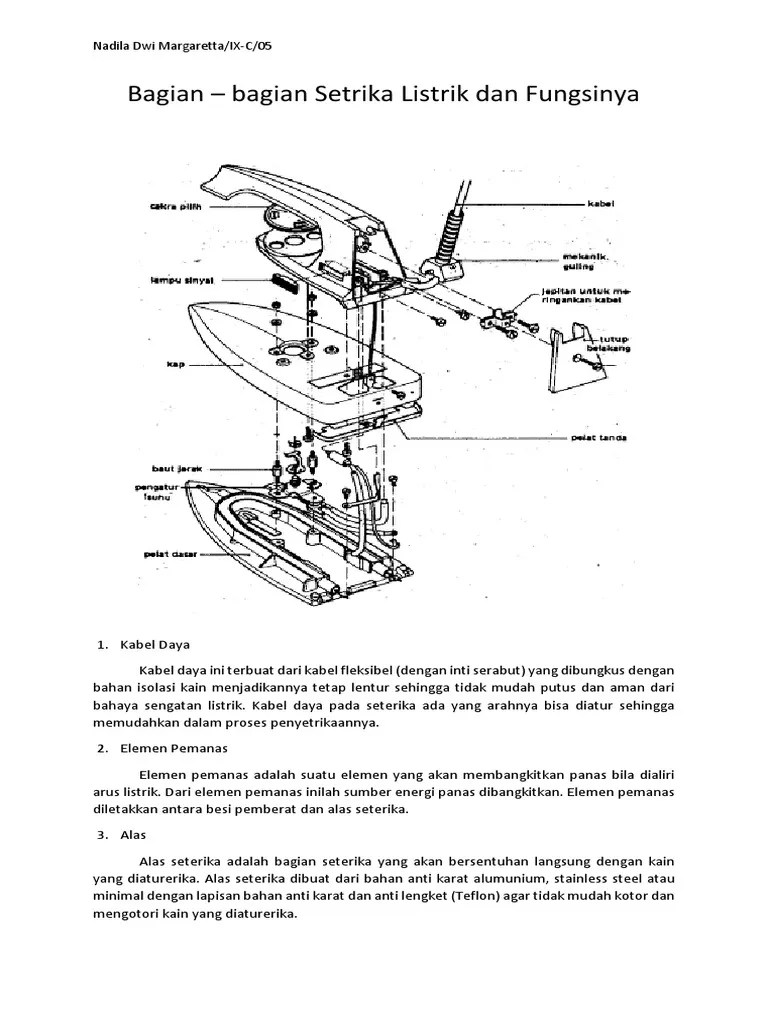 Belanja online komponen setrika terbaik, terlengkap & harga termurah di lazada indonesia | bisa cod ✓ gratis ongkir ✓ voucher diskon. Setrika listrik sebagai alat pemanas yang dapat mengeringkan pakaian. Tujuan percobaan â· mengetahui cara kerja dari setrika listrik â· dapat mengatasi permasalahan. Gambar 1 setrika listrik otomatis. Dibawah ini gambar salah satu tipe alas setrika :.